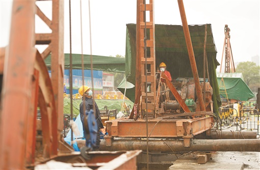 3月22日,中铁十四局湘雅路过江通道项目河东段施工现场,冲击钻在进行地下连续墙引孔施工。该段施工范围内明挖隧道段(湘江中路-芙蓉中路段)包含一座盾构接收井、2座人行天桥以及2条匝道,总长679米。其中湘江中路至油铺街段围护结构地连墙已于本月16日开始成槽施工,象征着河东段已经进入实质性开工阶段。记者 田超 通讯员 王建 摄影报道