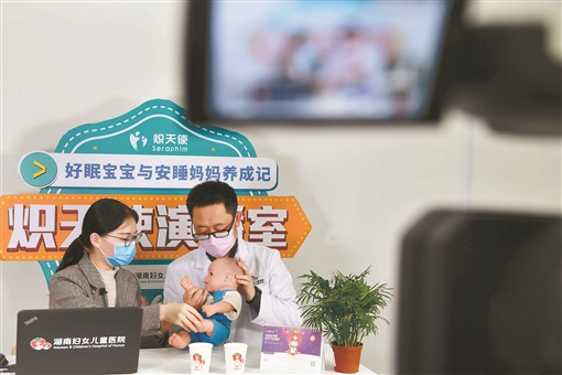 云健康 3月20日,湖南妇女儿童医院“云健康”直播,医疗专家殷旭(右)在讲授儿童健康知识。疫情期间,该院通过直播课堂,让人们足不出户学习了解健康知识。