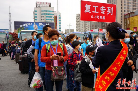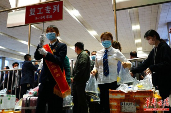 岳阳与鄂南地区同饮洞庭水,自古以来唇齿相依,交流频繁。岳阳是重要的交通枢纽,大量湖北务工人员亟待出省务工,岳阳成为他们坐车中转的首选地。为确保返岗复工人员平安出行,岳阳火车站积极行动,细化组织方案,认真做好车站公共区域通风消毒、复工旅客体温检测和疫情防控知识宣传工作;开辟返岗复工人员专用候车室,引导有序进站乘车。