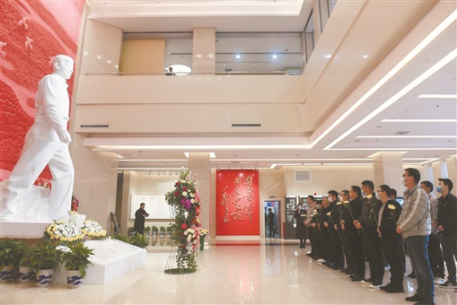 4月3日,湖南雷锋纪念馆,市民在雷锋塑像前敬献鲜花,重温誓词。当天起,雷锋生平事迹陈列馆免费提供鲜花,供前来参观的市民致敬英烈,缅怀雷锋。湖南日报记者 徐行 摄