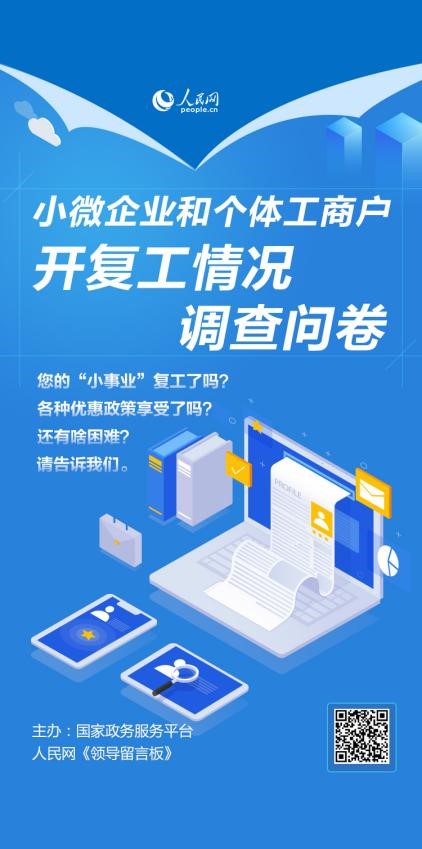 为了解小微企业和个体工商户复工复产情况和具体需求,便于有关部门有针对性的纾困解难,现推出“小微企业和个体工商户开复工情况”调查问卷。