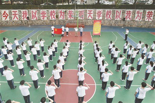 5月4日,衡东县第一中学的新团员在团旗下宣誓,光荣加入中国共产主义青年团,度过了一个特别的五四青年节。
