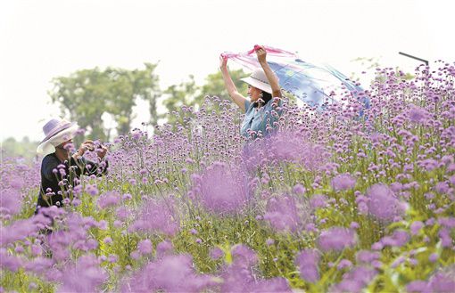 5月7日,洋湖国家湿地公园三期体育公园附近,市民在马鞭草花径间拍照。目前,该公园种植的柳叶马鞭草正值盛开旺季,紫色的花朵竞相开放,随风摇曳,营造出温馨与浪漫氛围。记者 田超 摄