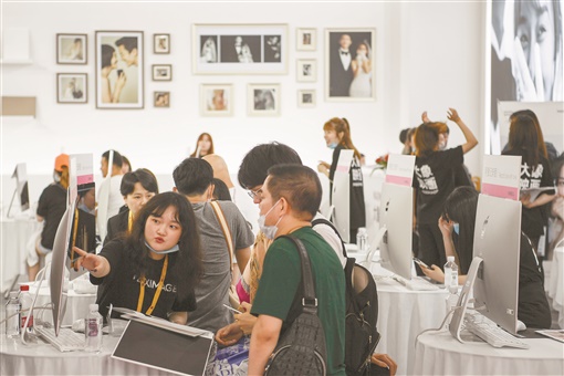 5月15日,市民在咨询婚纱摄影服务。当天,长沙首届婚博会暨潮婚文化艺术节在湖南国际会展中心开幕,展览包括婚纱摄影、婚礼策划、婚宴酒店、婚庆珠宝、婚纱礼服、新婚家装家电六大行业板块。湖南日报记者 傅聪 摄