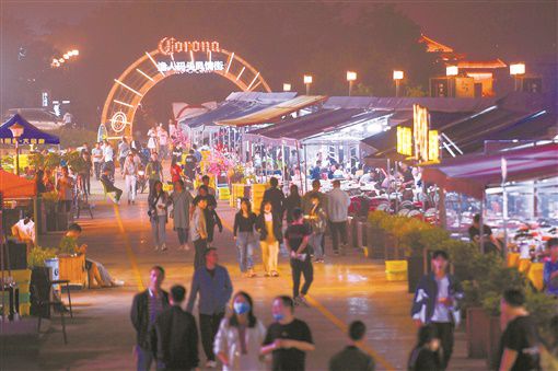 初夏入夜,长沙市岳麓区渔人码头就有不少市民前来游玩、宵夜。随着新冠肺炎疫情防控常态化以及复工复产复市逐步推进,长沙商圈逐渐恢复活力,夜经济日趋火爆。记者 傅聪 摄