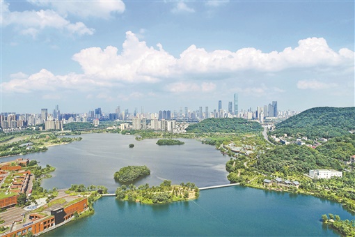 6月12日,水天一色的长沙西湖文化公园。当天,雨过天晴的长沙城碧空如洗,蓝天白云,风光旖旎。 湖南日报记者 李健 摄