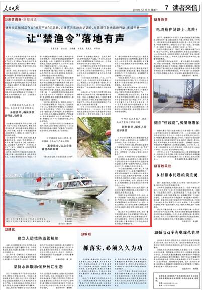 6月29日,本报读者来信版刊发“来信调查”《长江禁渔,为何还有禁而不止的现象》,反映了长江十年“禁渔令”实施后,沿江多地偷捕现象时有出现、渔政执法力量较为薄弱、渔民生活有隐忧等问题。报道刊发后,引起广泛关注。