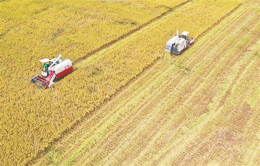 7月18日,永州市零陵区石山脚街道悟山里村,村民驾驶收割机收割早稻。近日,该区早稻陆续成熟,当地农民抓住天气晴好的有利时机抢收早稻、抢插晚稻,全面开启“双抢”季。 潘爱民 摄