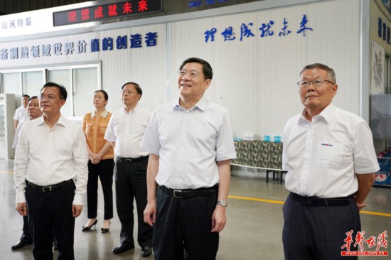 山河智能多年来深耕工程装备、特种装备和航空装备,拥有一批具有自主知识产权的高端装备产品,已跻身全球工程机械企业50强。来到这里,杜家毫与企业负责人深入交谈,了解企业研发生产经营情况,听取对湖南工程机械产业发展的意见建议。杜家毫指出,工程机械是湖南的优势产业,更是国之重器,要坚守主业,抢抓国家加大“两新一重”建设力度机遇,不断做大做强,为湖南工程机械产业走在全球前列作出更大贡献。