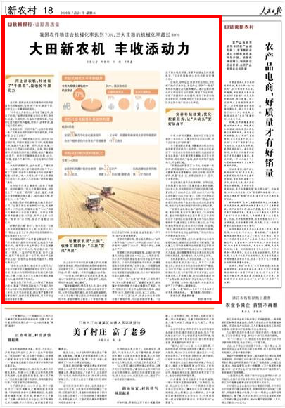 我国农作物综合机械化率达到70%,三大主粮的机械化率超过80%