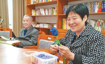 湘潭市第六人民医院康养区入住老人在进行手工制作。甘纪平摄