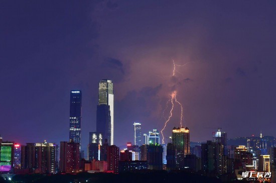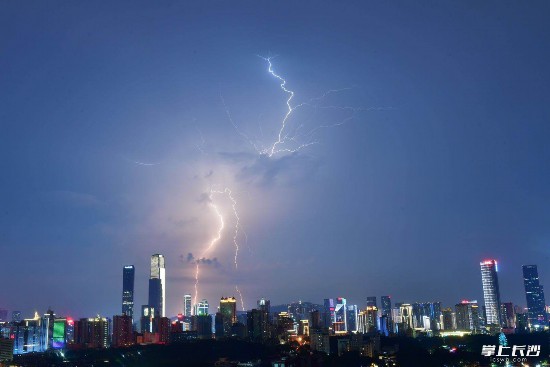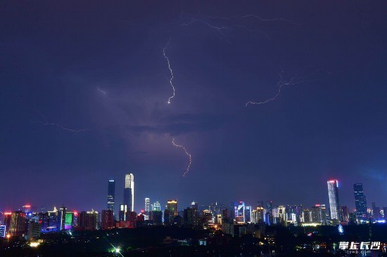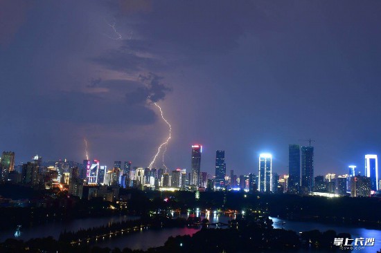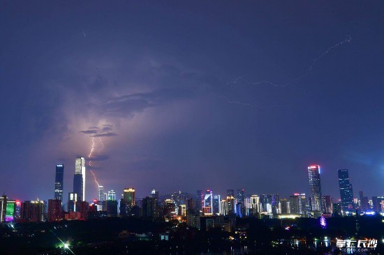 秋高气爽 雷电驾到。今晚8时许,星城长沙雷电频闪,年嘉湖上空“风驰电掣”,给城市增添了“不一样的美”。(记者 罗杰科 王志伟 摄影报道)