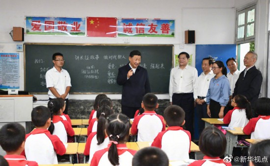 习近平总书记16日赴湖南考察调研。当天下午,他来到郴州市汝城县文明瑶族乡沙洲瑶族村“半条被子的温暖”专题陈列馆、村服务中心和卫生室、沙洲现代农旅示范基地、文明瑶族乡第一片小学,以及村民家中,了解当地开展红色教育、发展扶贫产业、巩固脱贫成果等情况。(文字记者张晓松、朱基钗 摄影记者李学仁、谢环驰、岳月伟 )