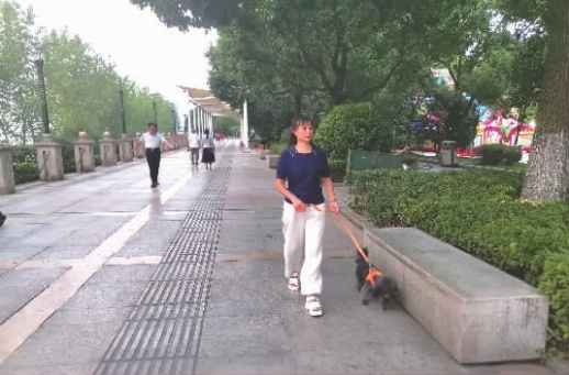 市民刘女士用一根一米多长的犬绳牵着一条贵宾犬在散步。她告诉记者,自己今年开始养犬,还特意看过《长沙市养犬管理条例》内容,按规定申办了养犬许可,平时也很注意养犬行为规范。“出门遛狗,牵绳是必须的,这是最基本的文明。”
