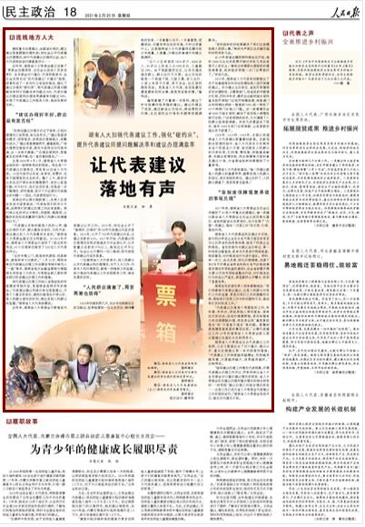 一位湖南省人大代表表示,向人民群众公开代表建议和办理情况,对于人大工作、代表本人和办理单位,都是一种强有力的监督,有力推动代表建议工作实现服务人民、推动发展的目标。