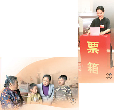 图③:湖南省人大代表盘晓红(左三)调研农村家庭教育情况。