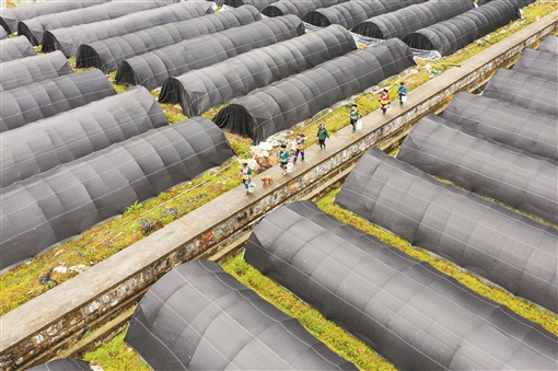 2月27日,吉首市矮寨镇岩科村,村民刚从大棚里采摘完羊肚菌。近年,当地依托地理环境优势,发展高效特色种植农业,促进农民稳定增收。 张术杰 摄
