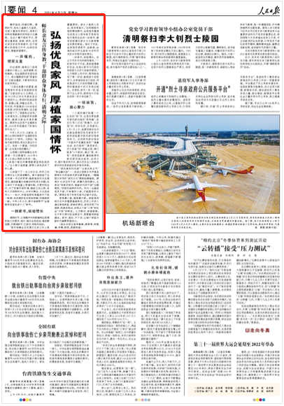 慎终追远,民德归厚。清明时节,向先人遥寄久久追思,与家人重拾共同回忆,是我们的特有情感寄托和传统文化赓续。在这个属于家的节日,更要注重家庭、家教、家风,在师长亲友的言传身教中,在干部群众的身体力行中,弘扬优良家风,厚植家国情怀。