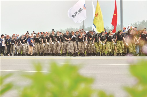 4月17日7时30分,2021湖南(春季)百公里在长沙洋湖水街南广场浩荡出征。1.2万余名毅行者将在两天的时间里,徒步跨越长株潭,向建党100周年献礼。这也是我省自疫情之后,首场超过万人参与的全民健身活动。