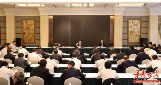(5月8日下午,湖南省党政代表团在上海就地举行赴江西、上海考察总结会议。省委书记、省人大常委会主任许达哲主持并讲话,省委副书记、省长毛伟明讲话。 湖南日报·华声在线记者 赵持 摄)