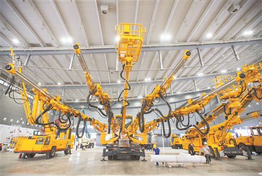 5月18日,长沙国际会展中心,铁建重工展台,大型机械设备已布展到位。5月19日,2021长沙国际工程机械展览会开幕。记者 辜鹏博 摄
