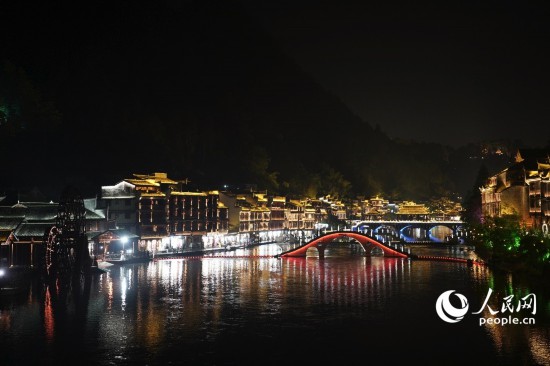 夜晚的湘西古镇。人民网记者 王天乐摄