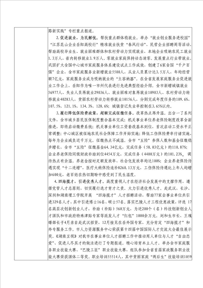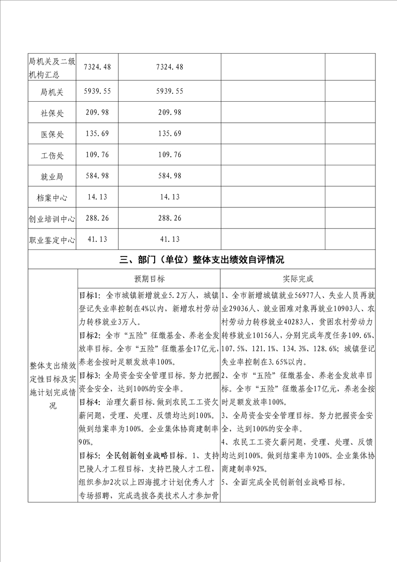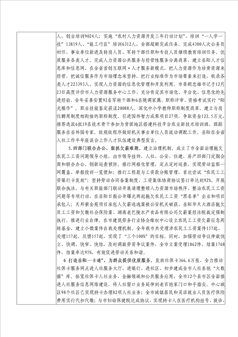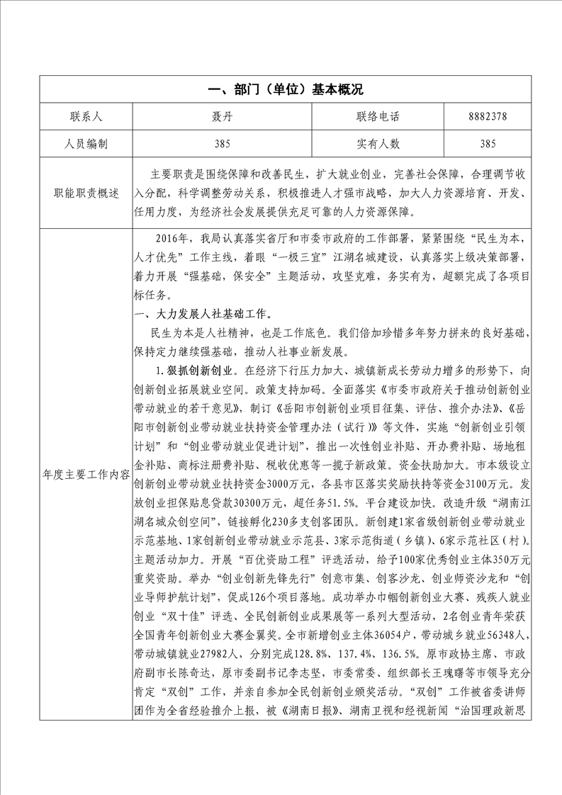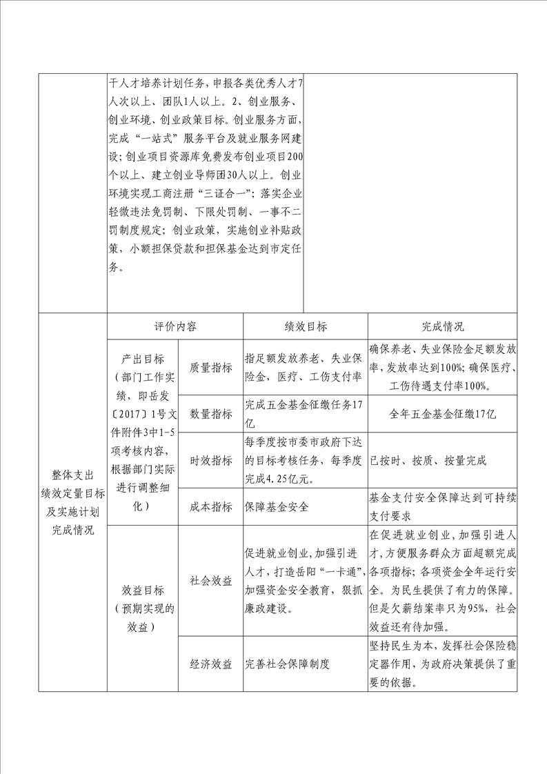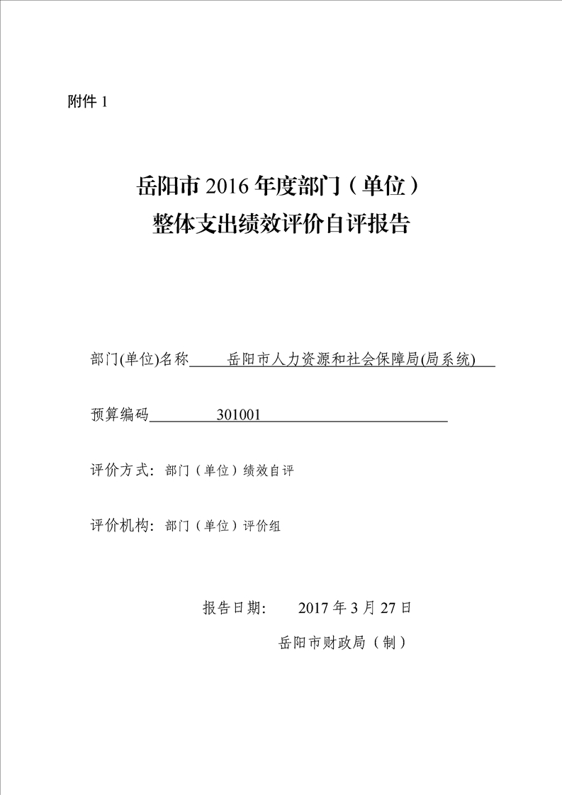 岳阳市2016年人力资源和社会保障局整体支出绩效评价自评报告