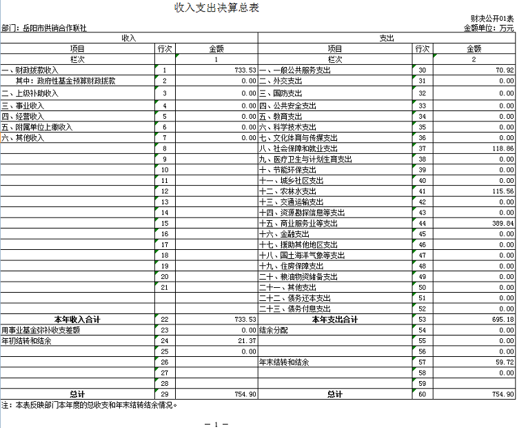 2017 年度收、支总计754.9万元。与 2016 年相比,收、支总计各减少53.33万元,降低6.6%。 主要是2017年年初结转比2016年年初结转减少。
