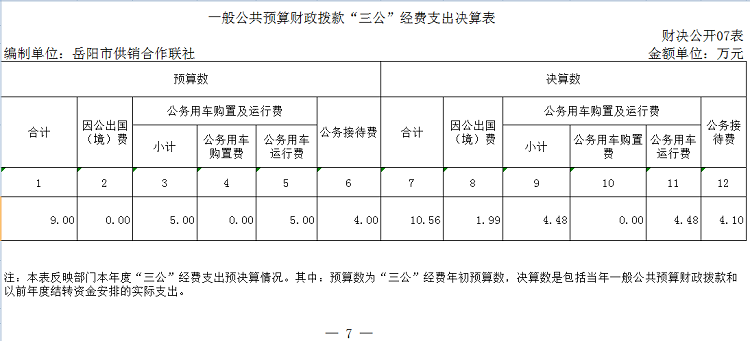 七、一般公共预算财政拨款“三公”经费支出决算表