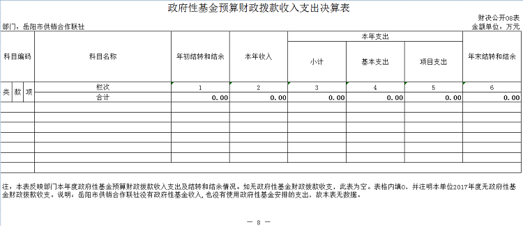 岳阳市供销社2017年度无政府性基金预算收入支出