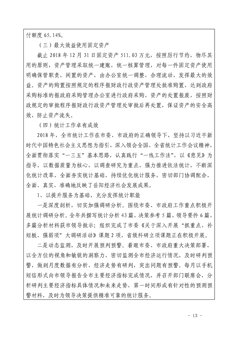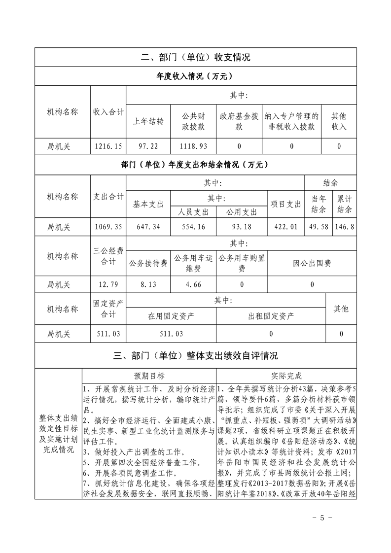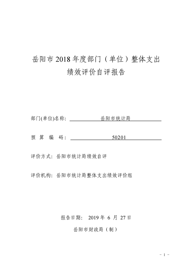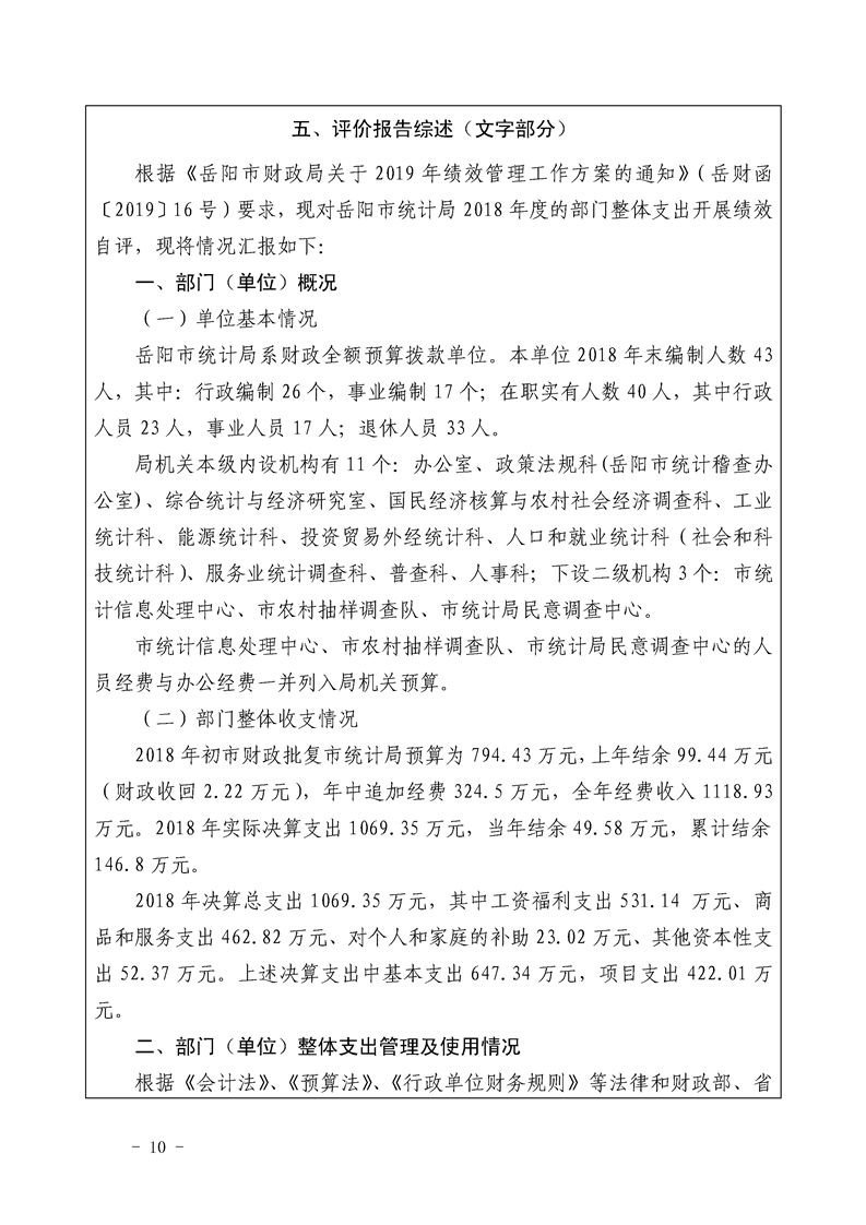 岳阳市统计局2018年整体支出绩效自评