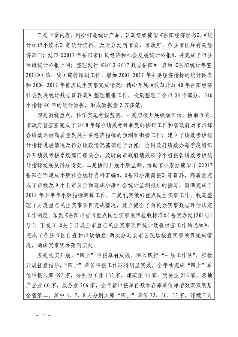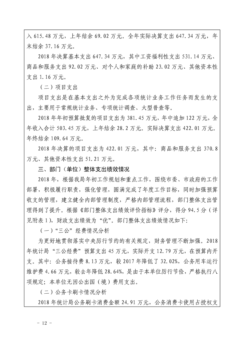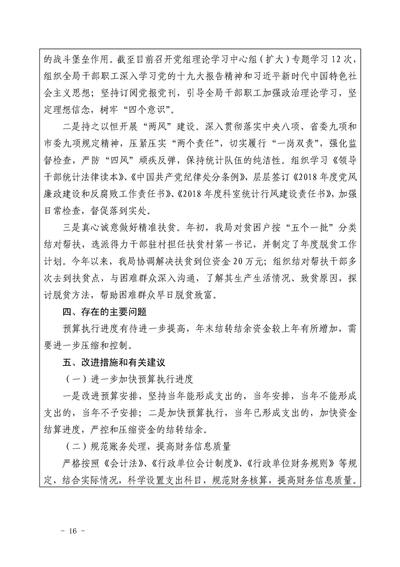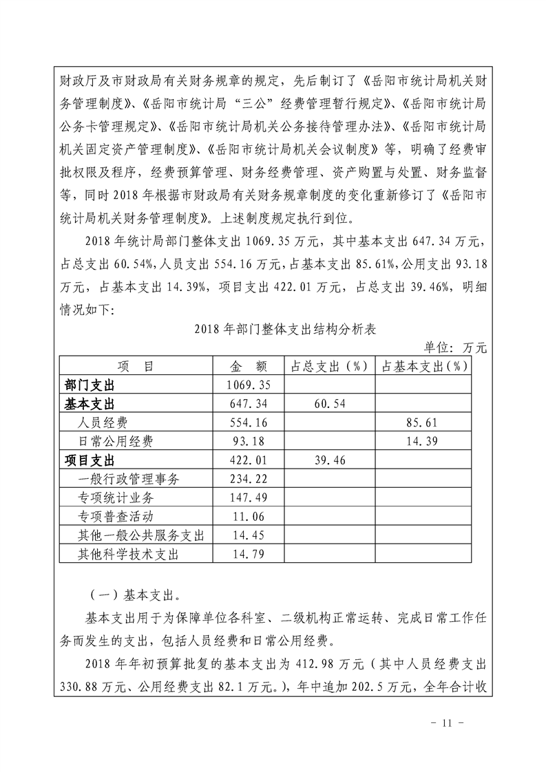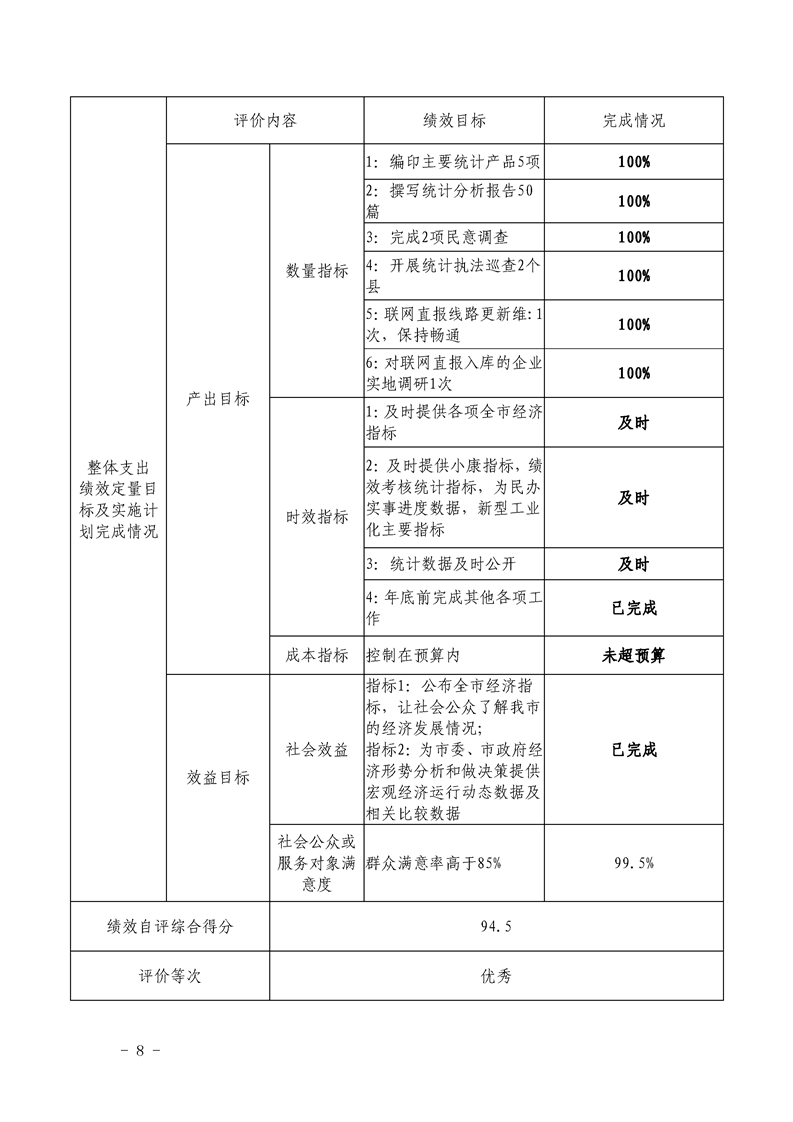 岳阳市统计局2018年整体支出绩效自评