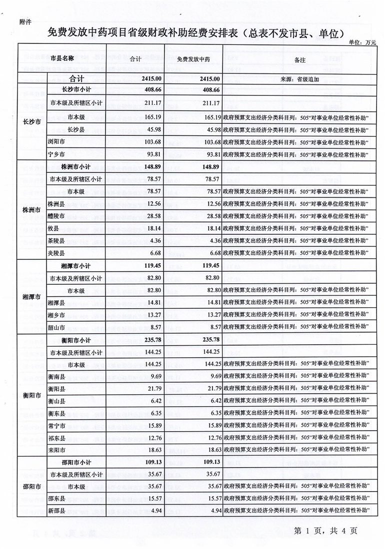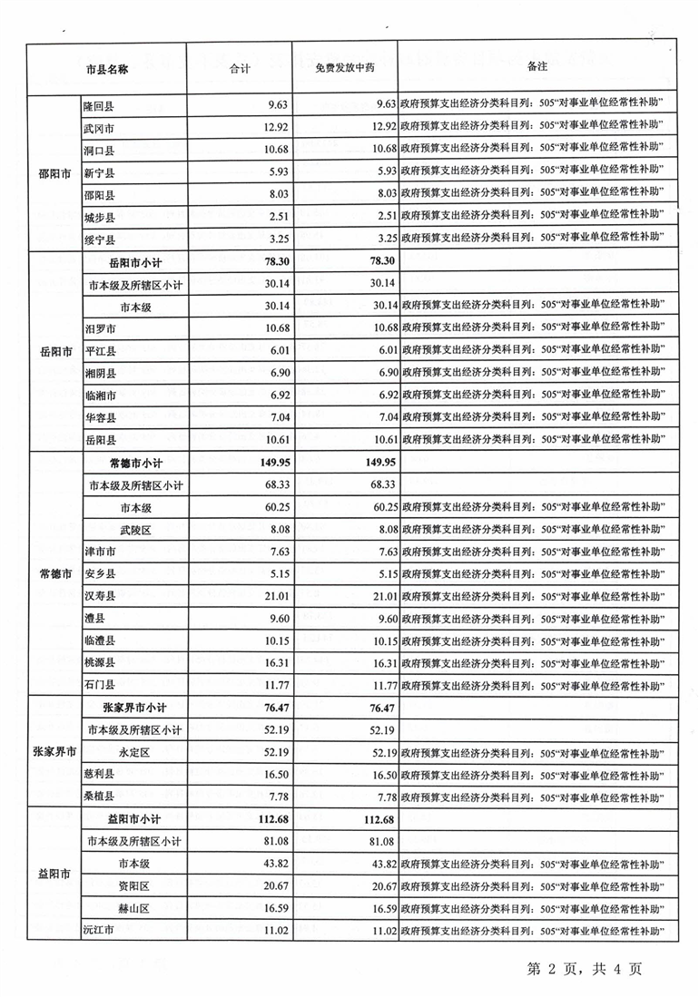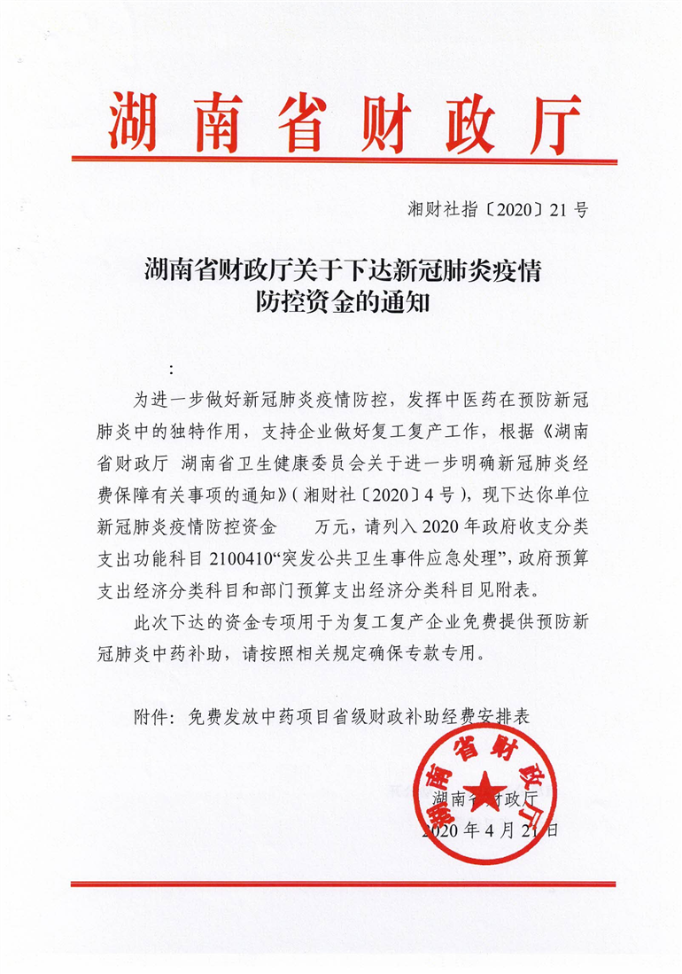 湘财社指[2020]21号 湖南省财政厅关于下达新冠肺炎疫情防控资金的通知(免费发放中药)