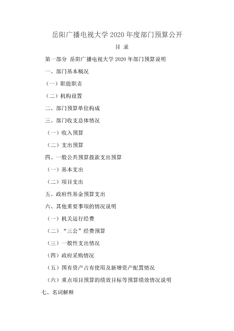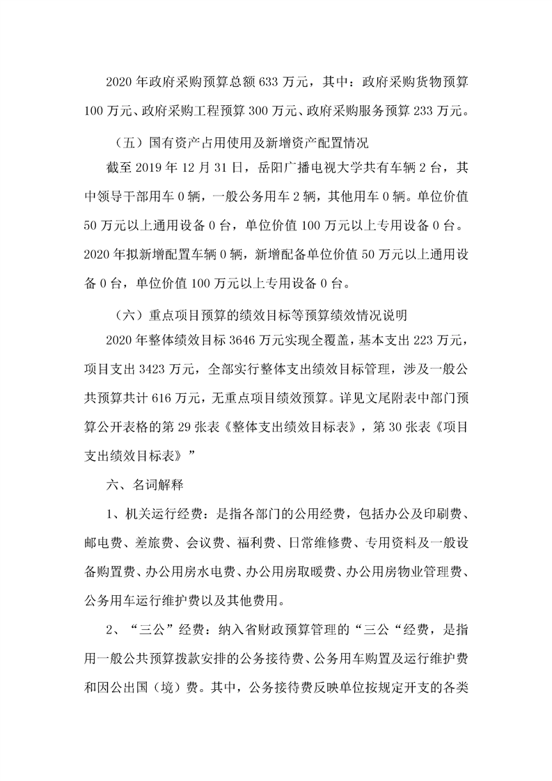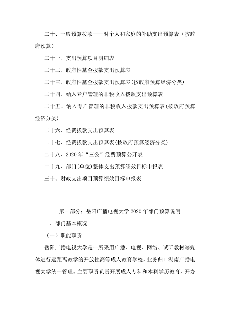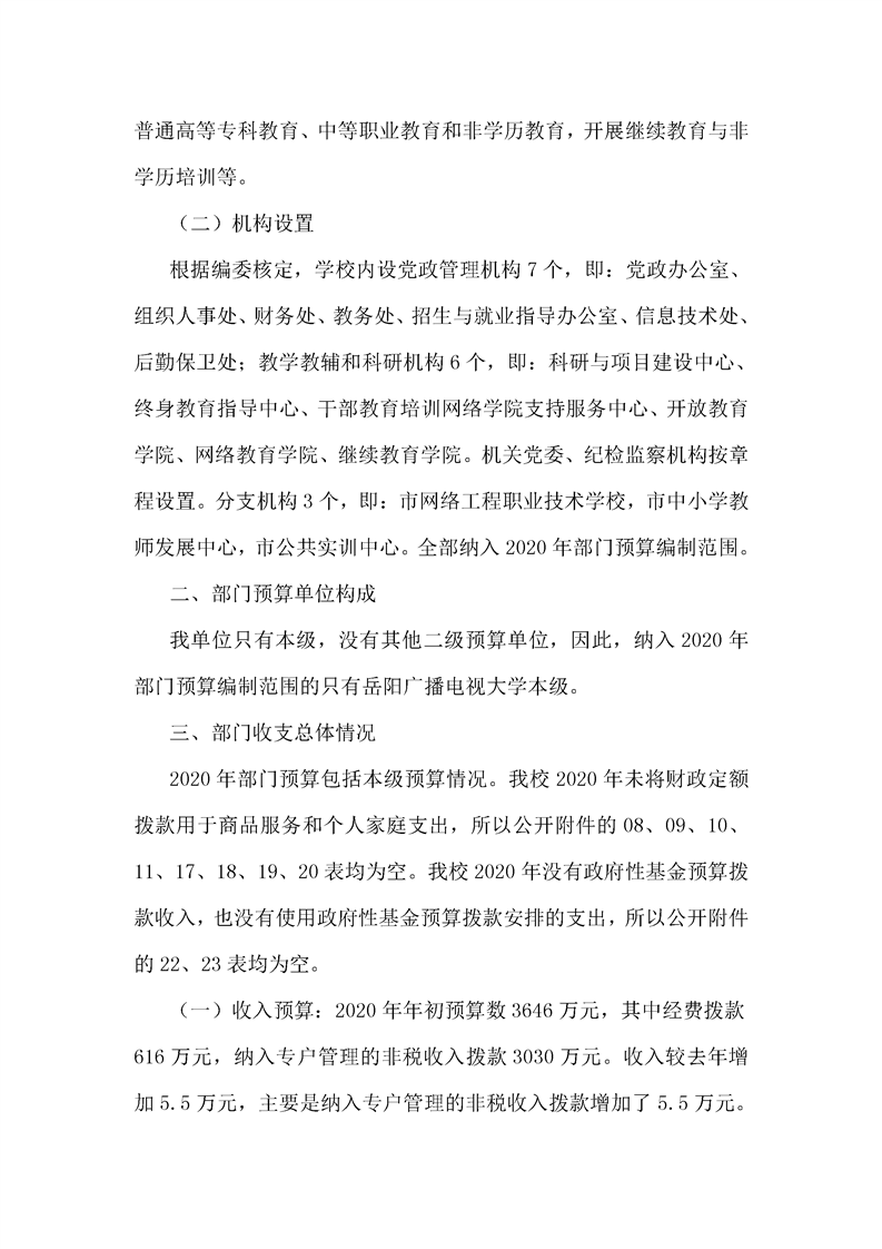 岳阳广播电视大学2020年度部门预算公开