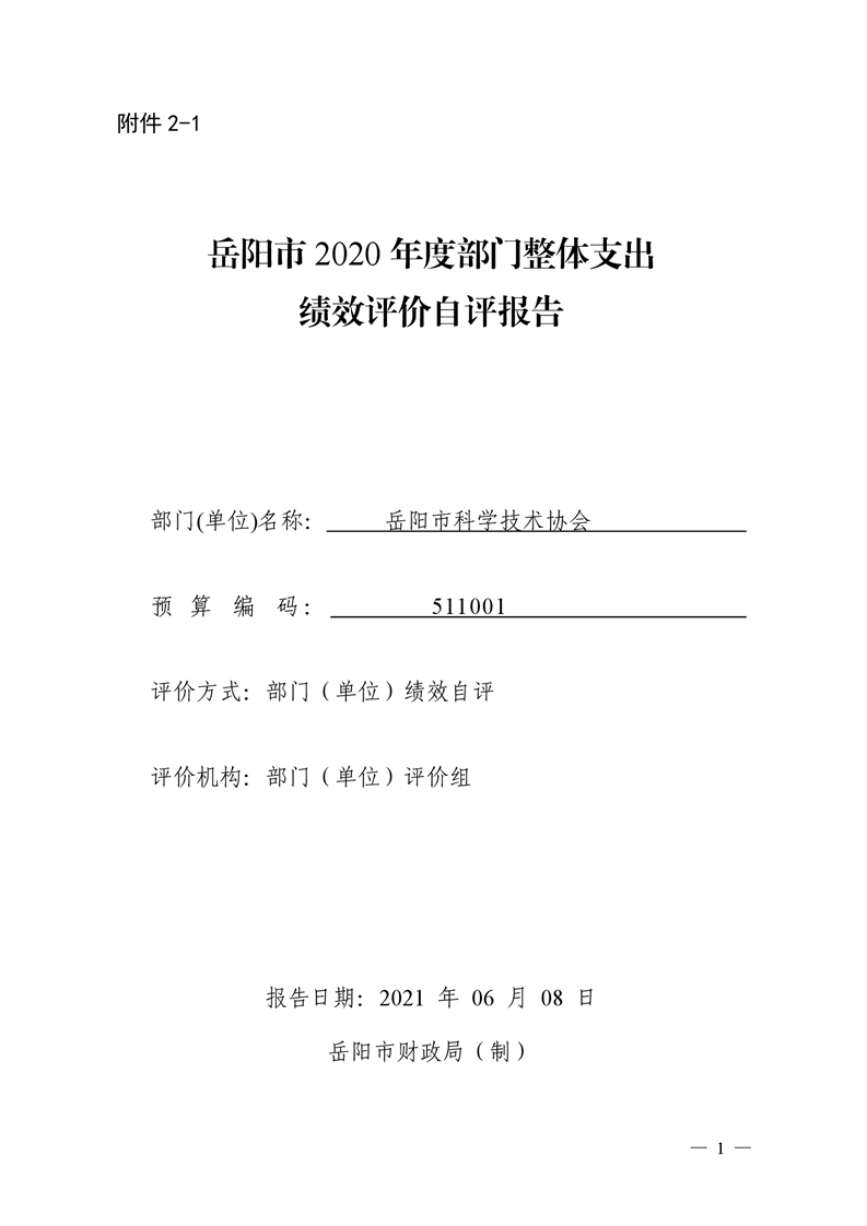 2020年岳阳市度部门整体支出绩效评价自评报告