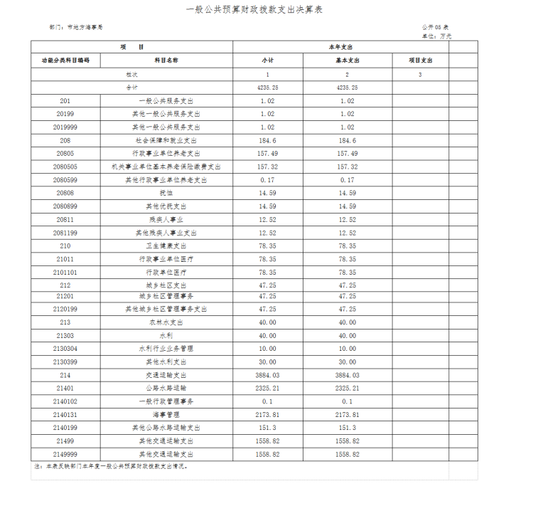11、交通运输支出(类)公路水路运输(款)海事管理(项)。