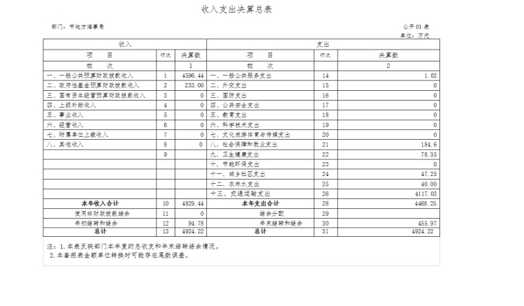 本年收入合计4829.44万元,其中:财政拨款收入4829.44万元,占100%;上级补助收入0万元,占0%;事业收入0万元,占0%;经营收入0万元,占0%;附属单位上缴收入0万元,占0%;其他收入0万元,占0%。