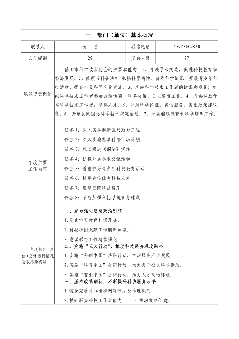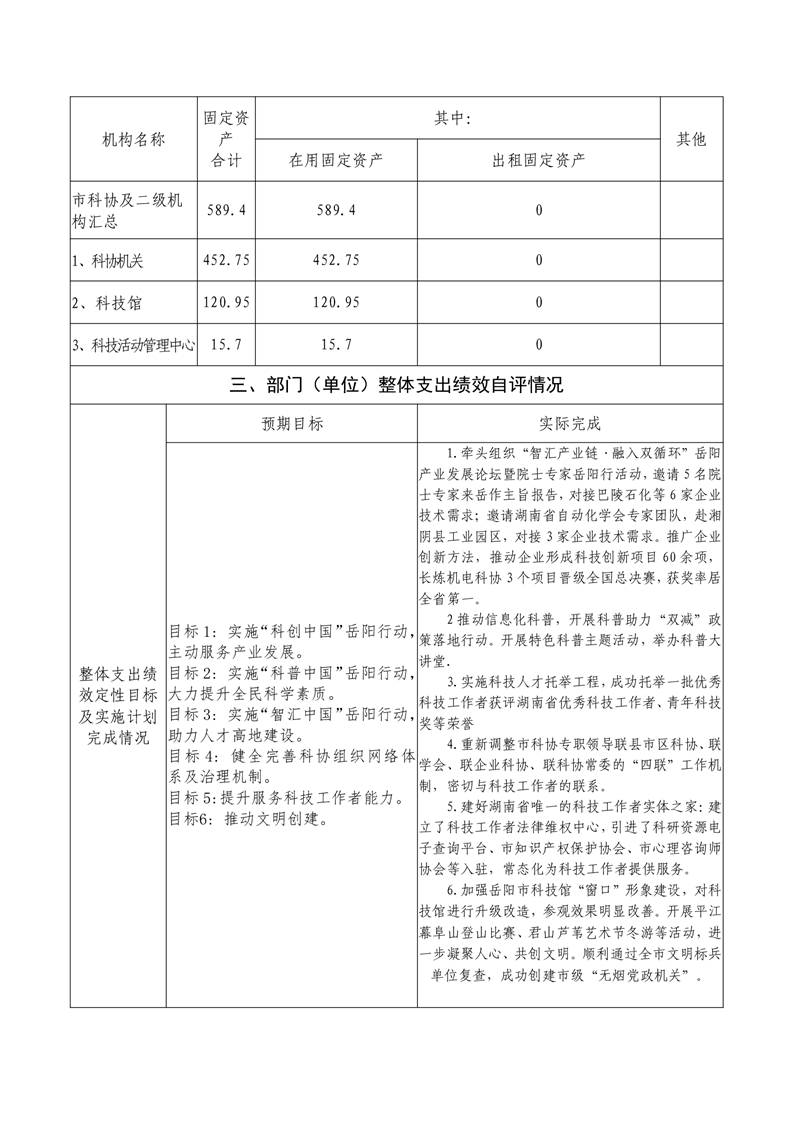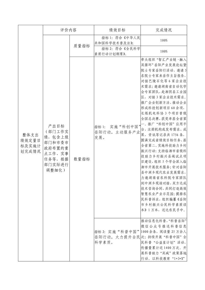 岳阳市2021年度部门整体支出绩效评价自评报告