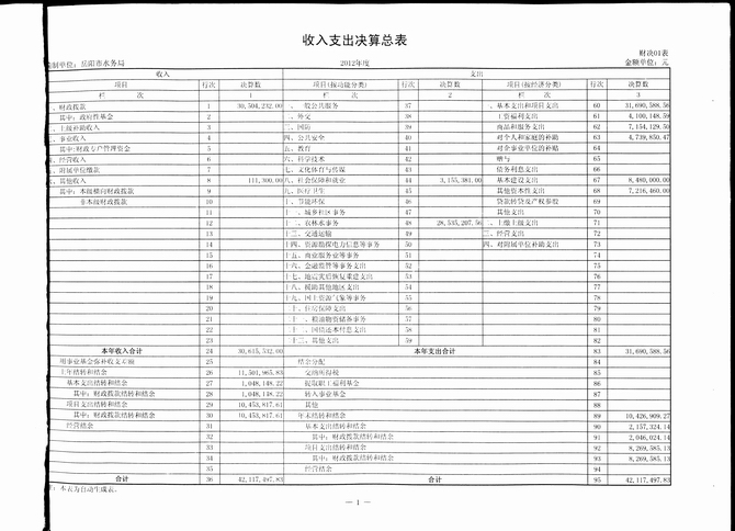 岳阳市水务局2012年度收入支出决算总表
