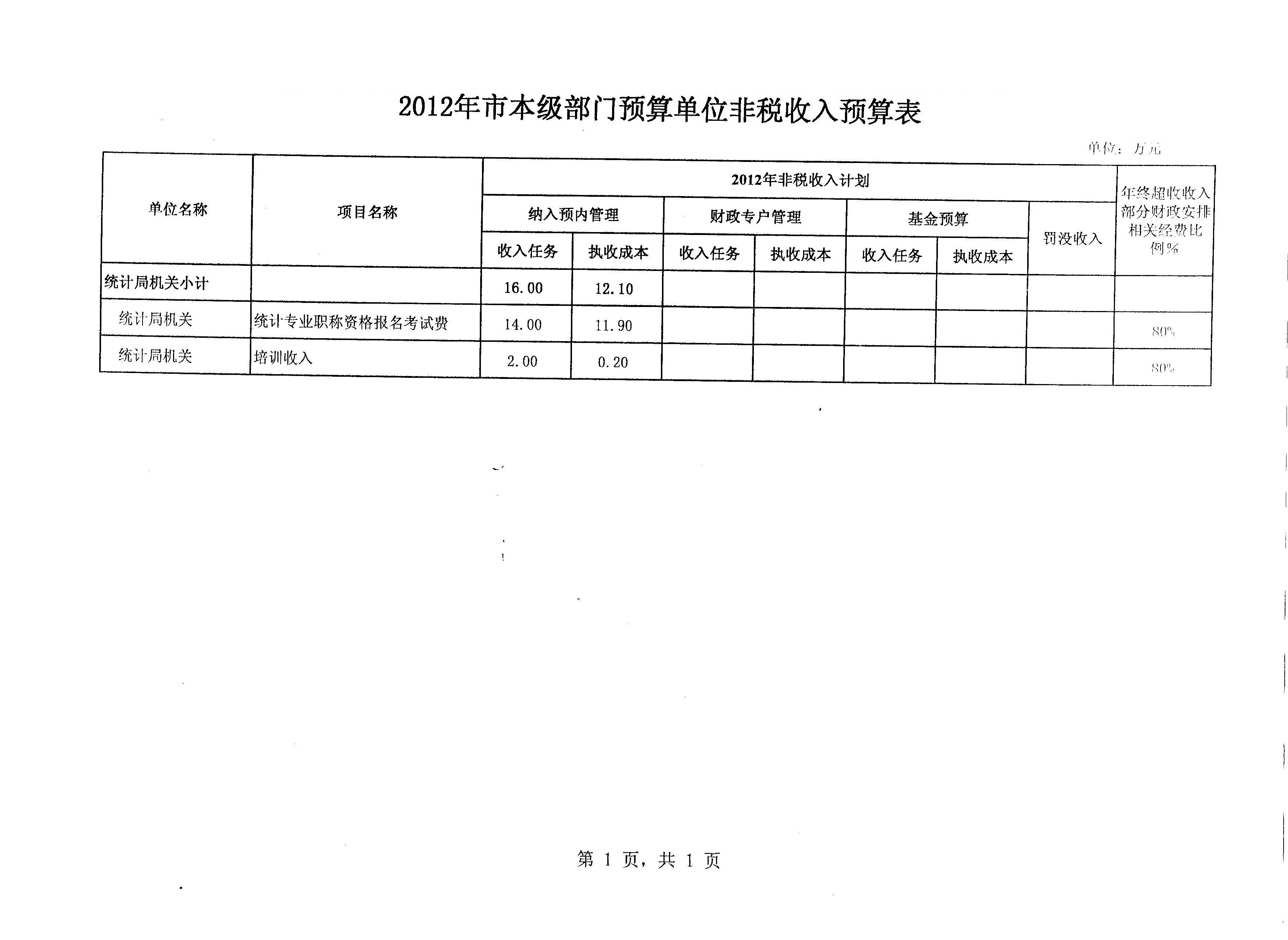 2012年岳阳市统计局本级部门预算单位非税收入预算表