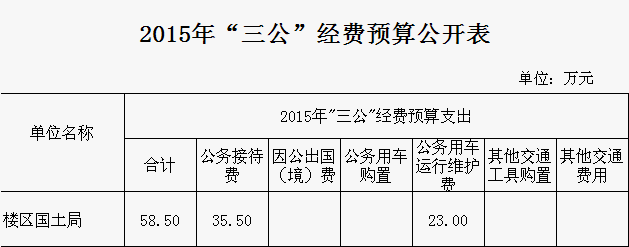 2015年度岳阳市国土资源局岳阳楼区分局“三公”经费预算公开表