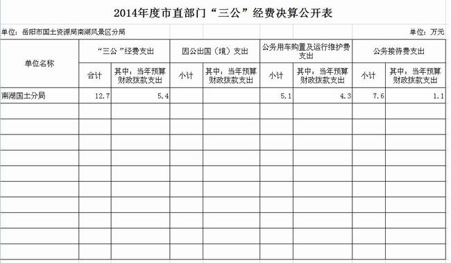 2014年度岳阳市国土资源局南湖风景区分局“三公”经费决算公开表