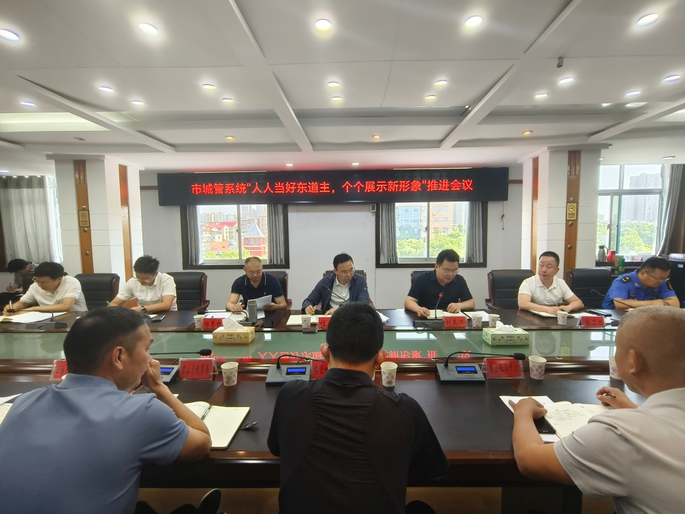 会议传达了岳阳市“人人当好东道主,个个展示新形象”动员会精神;对城乡风貌提质改造、“找问题、促整改”工作、城管领域“十大行动”和火车站地区喊客拉客专项整治等工作进行了点评;安排部署了城乡风貌“大扫除”行动、城管领域安全生产、市主城区防涝排渍等工作。