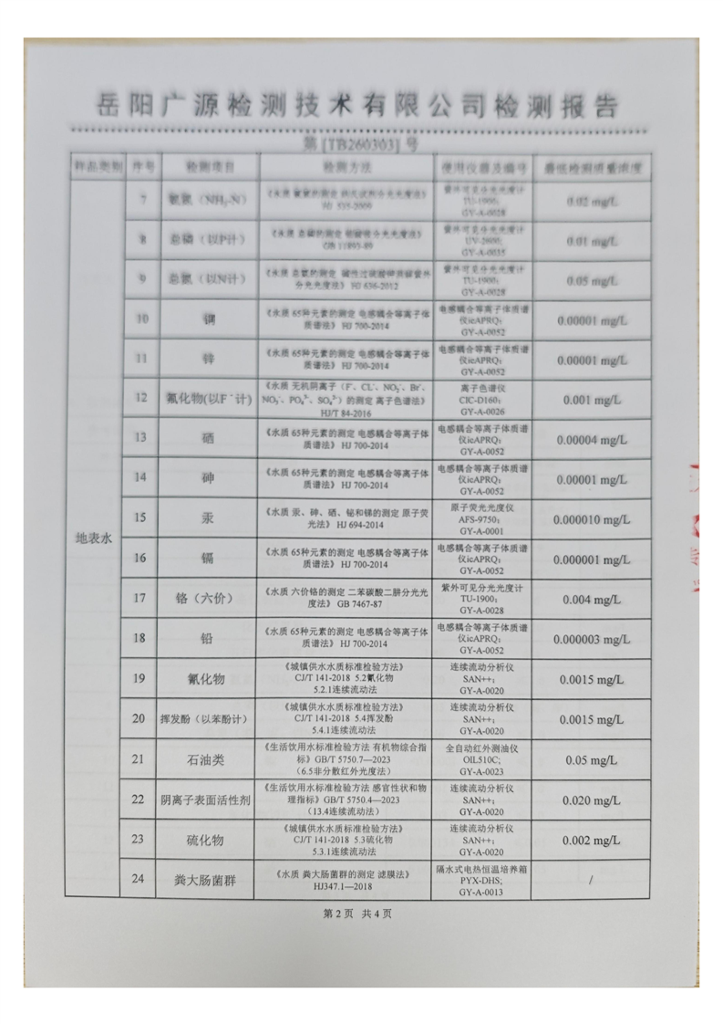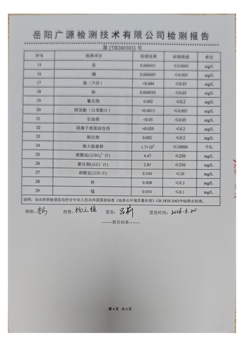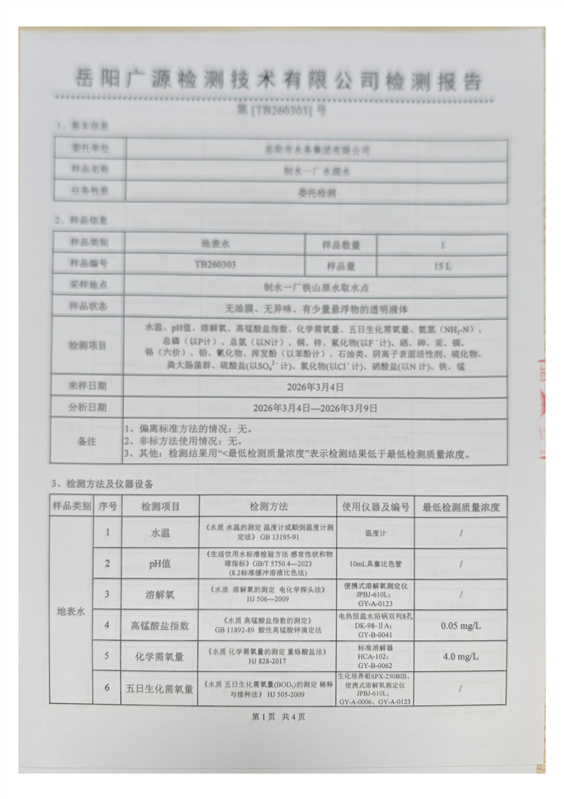 2026年3月岳阳市水务集团水源水水质检测月报表