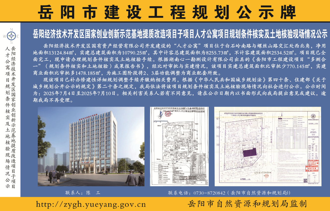 岳阳经济技术开发区国家创业创新示范基地提质改造项目子项目人才公寓项目规划条件核实及土地核验现场情况公示