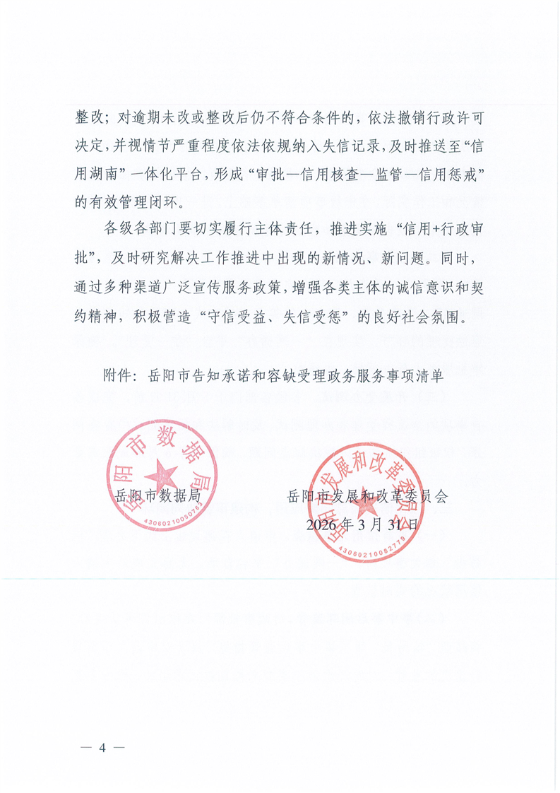 岳阳市数据局岳阳市发展和改革委员会关于推广“信用+行政审批”应用场景的通知