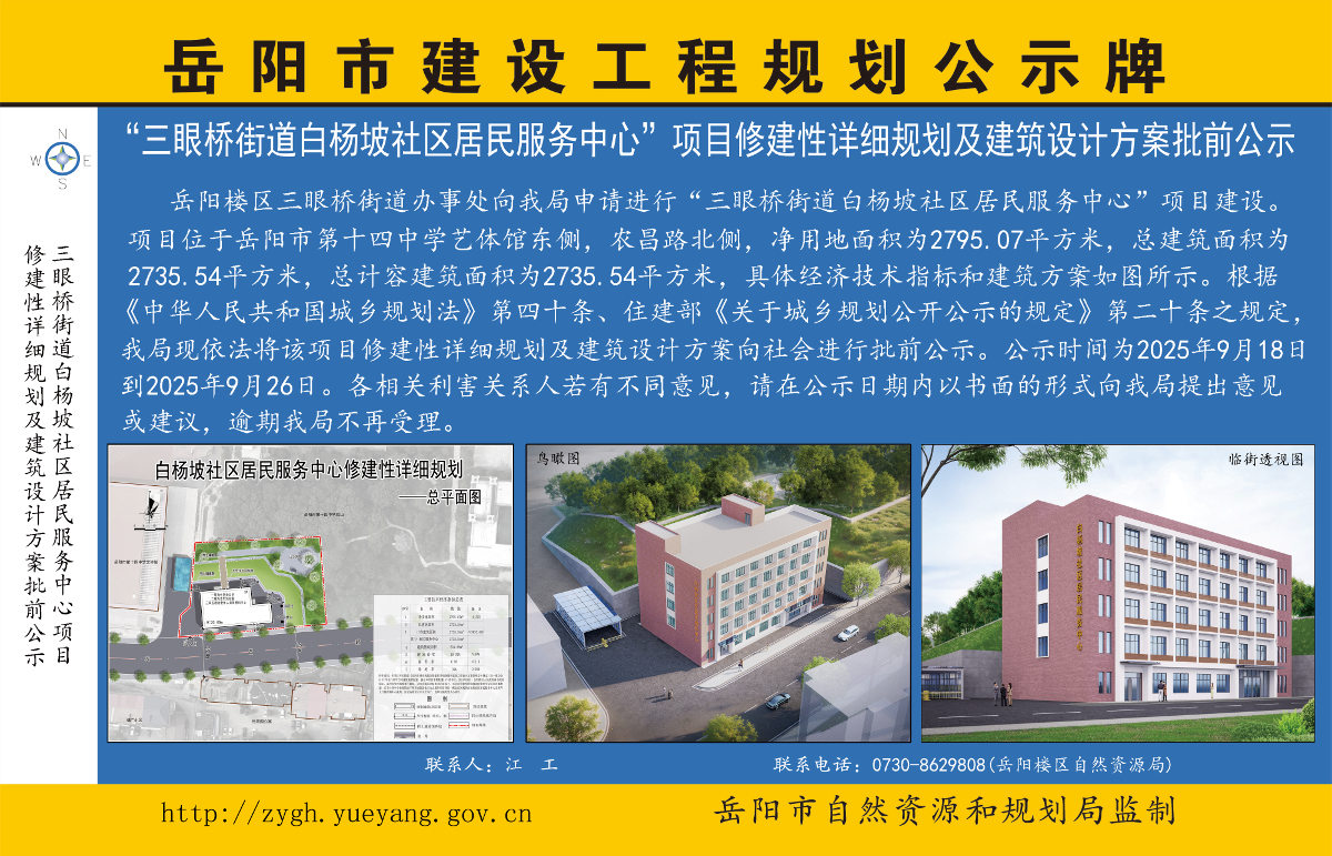 白杨坡社区居民服务中心项目修建性详细规划及建筑设计方案批前公示