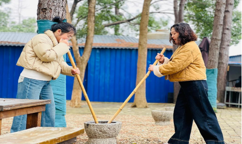 打糍粑作为一项重要的非遗体验项目,不仅象征着团圆和睦,还承载着深厚的文化内涵,受到了女性的热烈欢迎。活动现场,女同胞们在专业老师的指导下,亲手体验了打糍粑的全过程:从将糯米蒸熟,到放入石臼中用木槌反复捶打,直至糯米变得黏稠、绵韧,最后,大家将打好的糍粑捏成圆团,裹上芝麻、花生碎等配料,在分享劳动成果的欢笑声中,古老技艺得以重新展现。