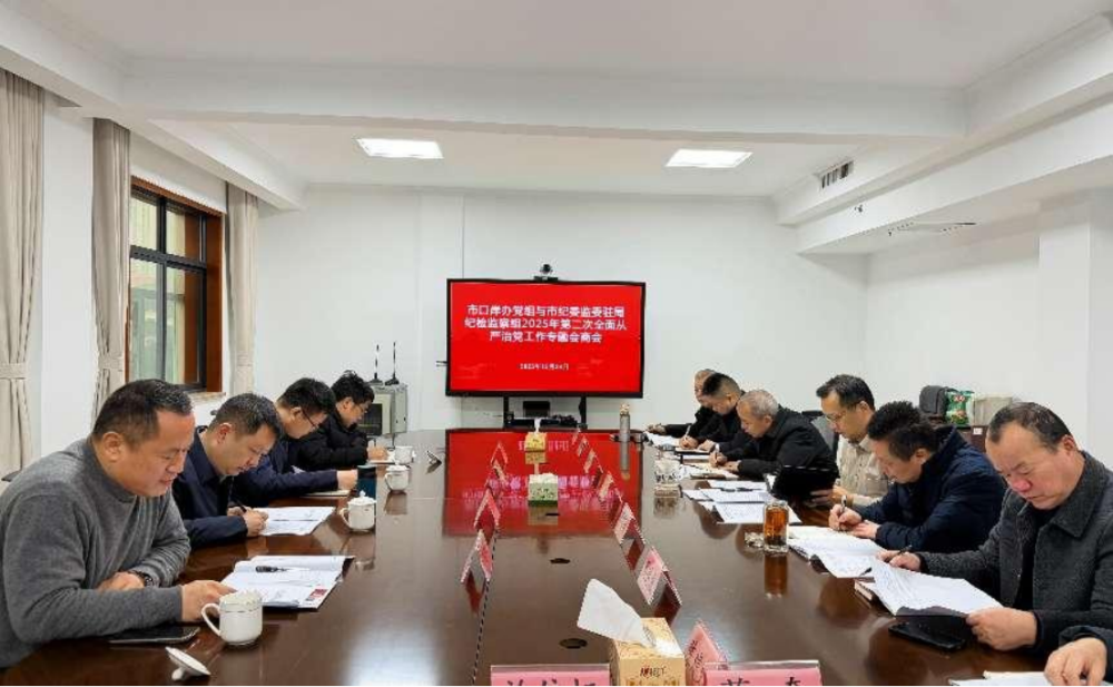 12月24日,市口岸办党组与市纪委监委驻局纪检监察组召开2025年第二次全面从严治党工作专题会商会,市纪委监委第十三纪检监察室副主任王毅到会指导,市口岸办党组书记吴波主持会议,市纪委监委驻市财政局纪检监察组以及市口岸办领导班子成员、机关科室和二级机构负责人参加会议。