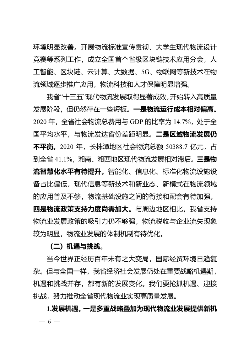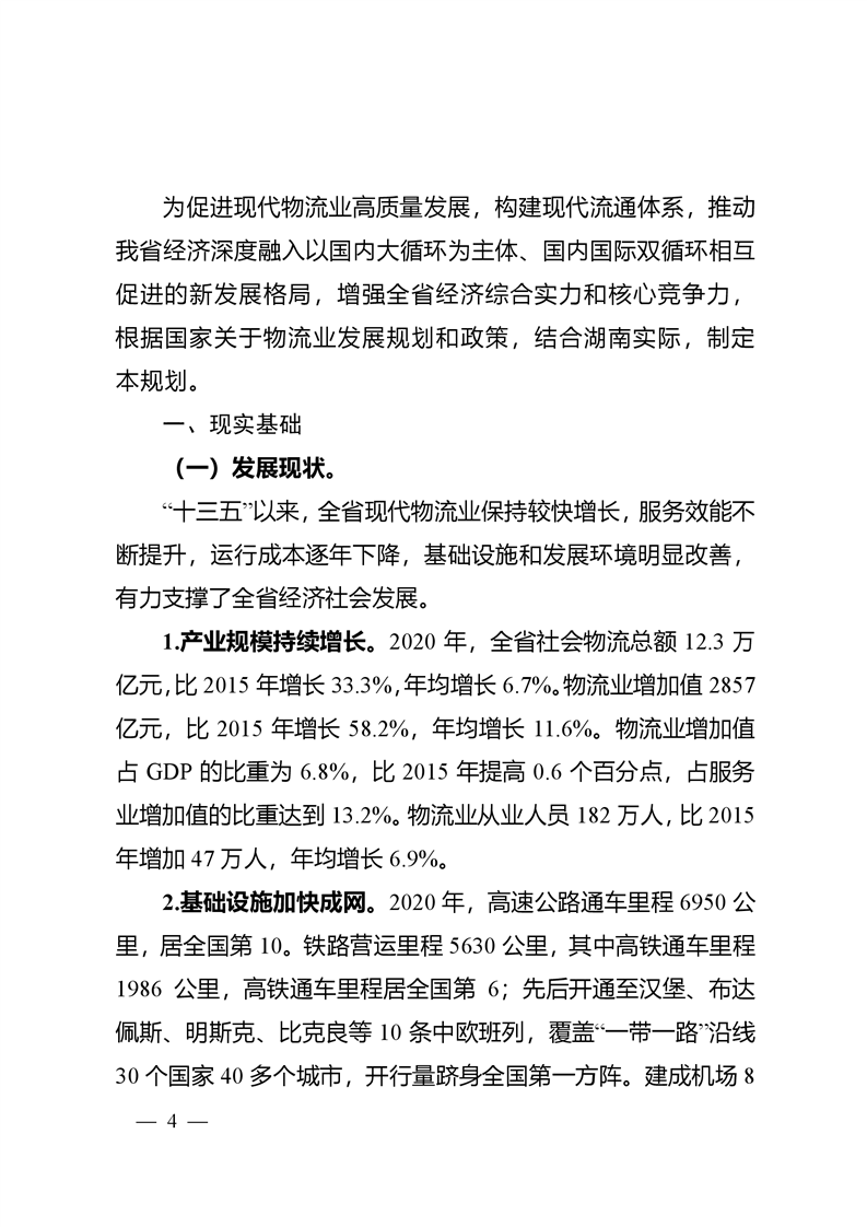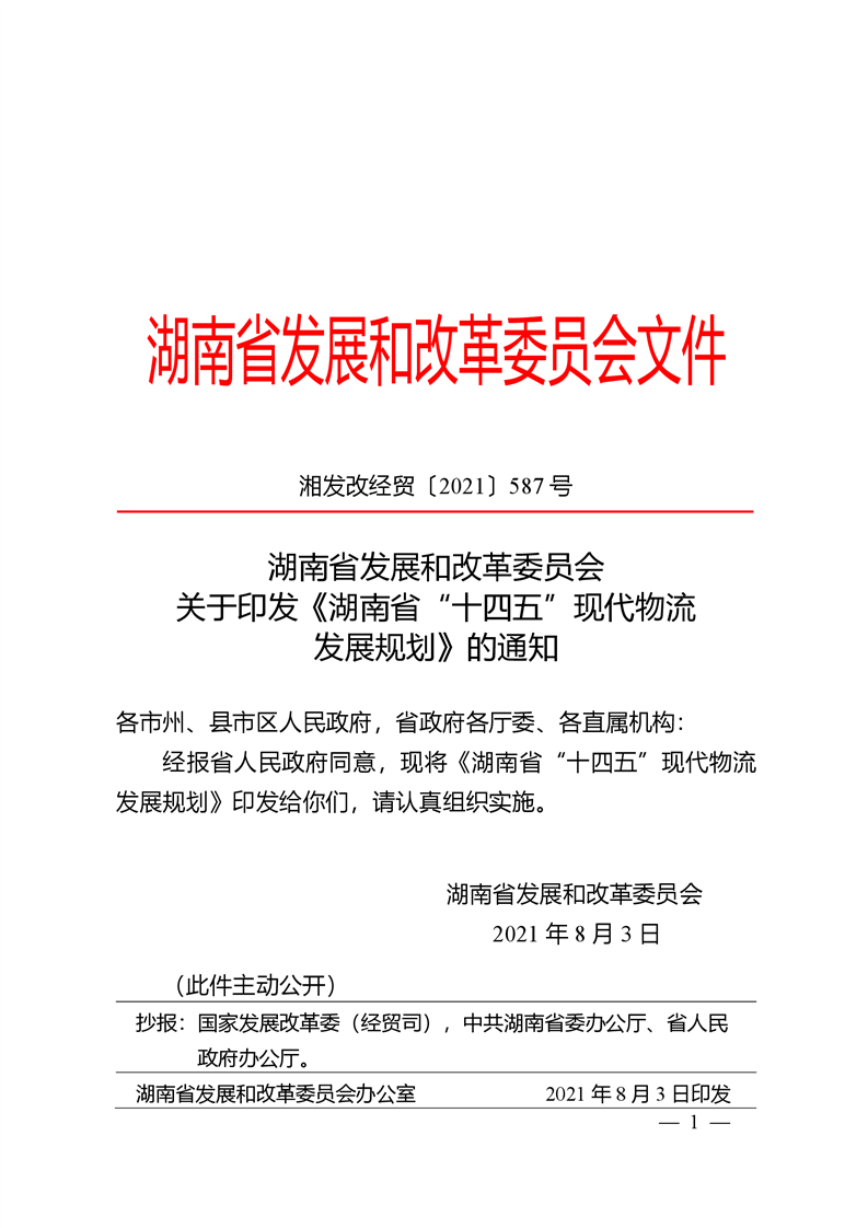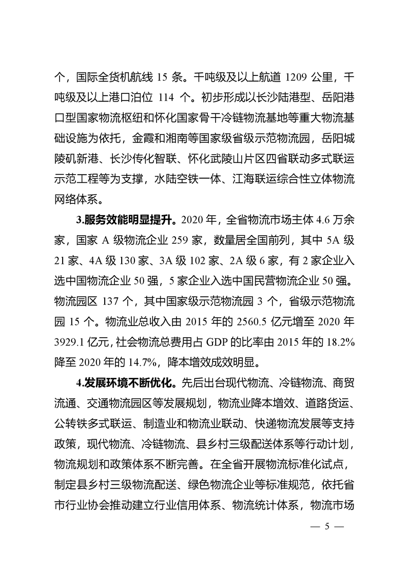 湖南省发展和改革委员会关于印发《湖南省“十四五”现代物流发展规划》的通知